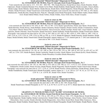Csatoljuk a marosszentgyörgyi utcák és a hozzájuk rendelt szavazókörök teljes listáját.