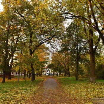 A park stílusát tekintve „angol parknak” épült, és az első évtizedekben elfedte a kastélyt. A beültetett fák szinuszos vonalrendszerben képezték a főút felé vezető kocsi utat, mindezt az 1962-es évig, amikor egy augusztusi szélvihar a park fáit nagyon megrongálta, sok fát kidöntött, nevezetesen az óriás méretű erdei fenyőket és kőriseket. Ezek pótlásakor az új fákat már egyenes sorokba ültették. A beavatkozás nem érintette a park többi fáit, a hárs, a tölgy, a szerecsendió, az akác, a juhar, a vadgesztenye, a tiszafa, a somfák, sőt a somfasétány is igen jó állapotban megmaradt, de az eltelt idő hozzájárult a híres fasorok megöregedéséhez. A fent említett som sétány tulajdonképpen egy fajtagyűjtemény: 28 fajtából áll, és mind a gyümölcsök beérési ideje, mind pedig formája, mérete, hossza stb. szerint képviseli a különböző somfajtákat.