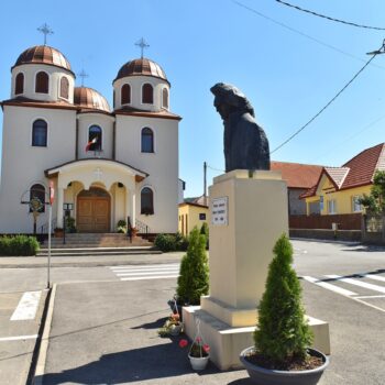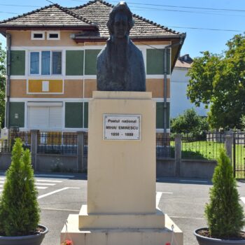 A helyi ortodox parókiák valamint a Szent György Kulturális Egyesület 2020-ban hivatalosan is kezdeményezte a román nemzeti költő, a román irodalom legkiemelkedőbb és legbefolyásosabb személyisége szobrának felállitását a 2-es számú ortodox templom előtti téren. Ion Vlasiu szobrászművész alkotását a marosszentgyörgyi Petru Suciu öntötte formába 1993-ban. A szobrot 2021 augusztus 15-én leplezték le.